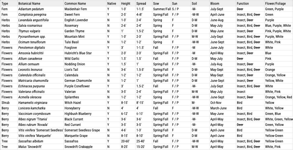 PERMACULTURE PLANT PALETTE