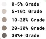 Grading for the highly sloped Willow Walk will require cut-andfill earthworks. This feature is involves standard switchbacks with a maximum slope of 20 percent over 40 feet, while the majority of the path has a slope between 5 and 10 percent.