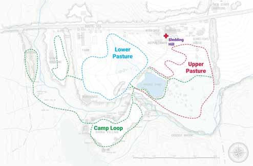 The ski trail map for Kroka's campus. The sledding hill south of the farmhouse.