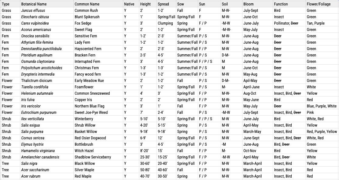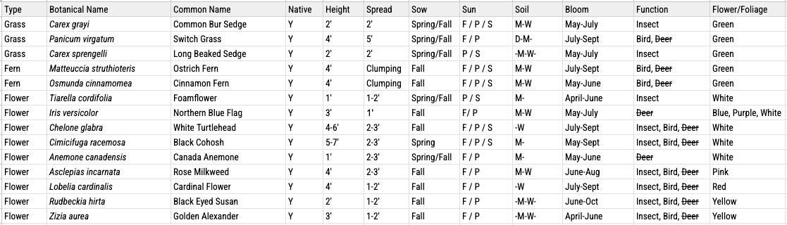 RAIN GARDEN PLANT PALETTE