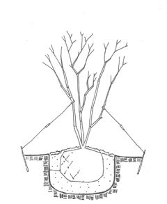 Detail 1. Multi-trunk serviceberry on-swale bracing.