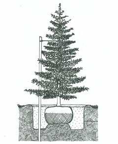 Detail 1. Ball & burlap conifer tree planting.