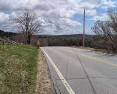 This segment of New Hampshire State Route 123 is considered a "high speed, low volume" road by the New Hampshire Department of Transportation. This means that people are driving fast on the road, and that the road is not considered to have a large numbers of cars driving on it at any given time. During a 30-minute observation period on a Thursday from 4 to 4:30pm, 35 cars passed going either direction. A representative of the New Hampshire Department of Transportation reported that car traffic here moves at an average speed of 53 MPH, despite the posted speed limit of 45 MPH. The posted speed limit is over one mile away in either direction from the Kroka campus. The sightlines for crossing in the proposed location are limited in both directions due to the hill crest on either side of the road. This makes the hill crest an obstacle for creating a safe crossing in the proposed area.
