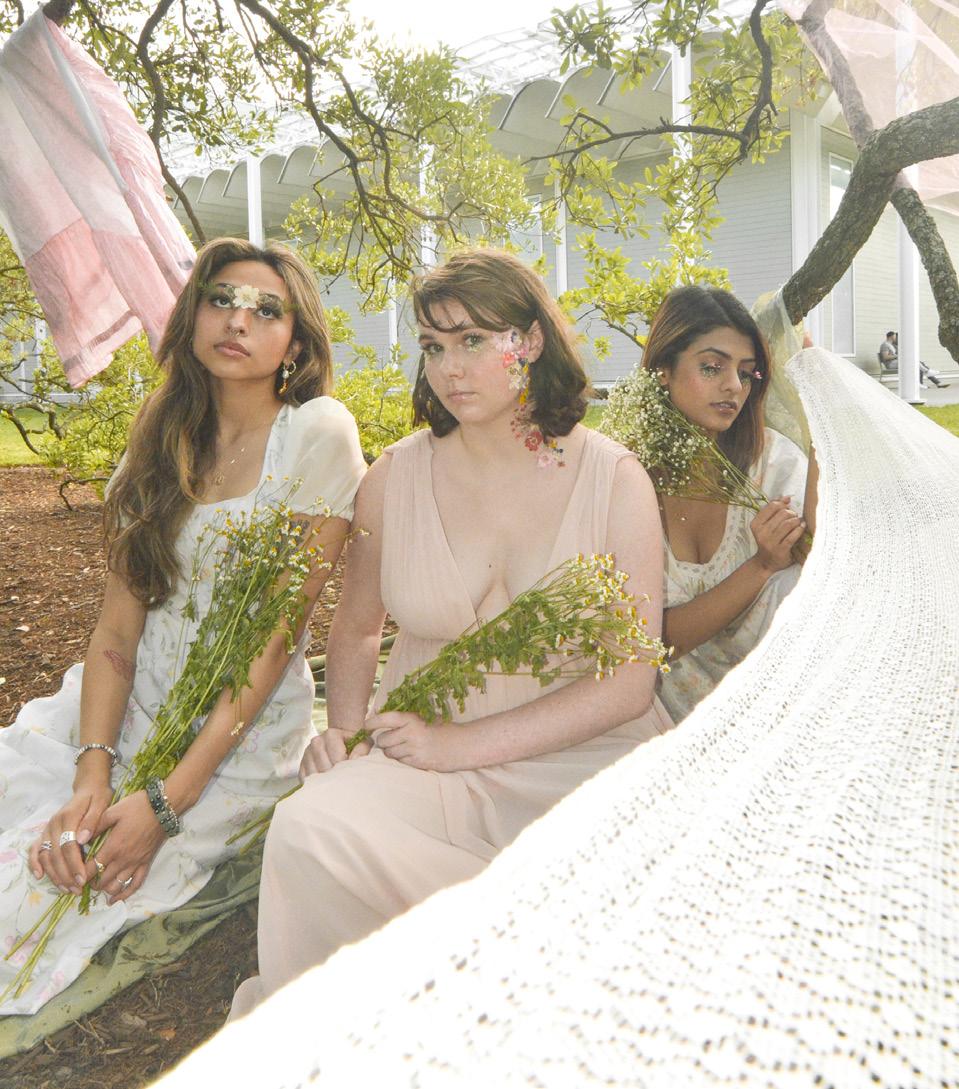 Photo by Kayla Simone dark green oak trees that extend their long branches alongside the ground making them the perfect setup for a fairy photoshoot. The photographer I worked with, Kayla Simone, had the models sit on the branches, placing different colored fabrics alongside them to contrast with their delicate, lightly colored dresses.