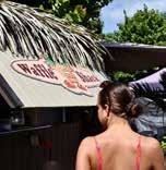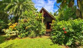 Atiu Villas is a pleasant surprise. The chalet-style villas and patios are beautifully constructed with local native wood and surrounded by tropical gardens. There is a swimming pool and a grass tennis court, and free WIFI. Each villa is self-contained, and the fridge and cupboards are well stocked. There is also a nicelooking dining area and bar that serves dinner and drinks every night.