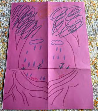 Draw anything you think could help both trees to grow, such as: • Water • Soil • Fallen leaves • The sun • Roots connected to each other underground Share your drawings with each other and ask: • What do you think one tree says to the other tree through their roots? • What might they ask each other about? • What can they give each other through their roots under the ground? Pens,Paper crayons or colored pencils Take a piece of paper and fold it half lengthwise, like a hotdog shape. Then fold the bottom third of the paper up, and unfold the paper. Now the paper is divided into four boxes. On each side, draw a tree, and below the fold, draw the tree’s roots. ART-MAKING ACTIVITY: STAND TALL & TOGETHER TREES ACTIVITY PHYSICAL WELLBEING TOOLKIT 11