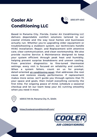 Cooler Air Conditioning LLC, situated in the heart of Panama City, stands as a paragon of outstanding HVAC service. As a veteran owned enterprise, we are rooted in the values of integrity, excellence, and dedication to customer satisfaction. Our proficient team offers unparalleled heating and air conditioning Panama City residents count on for their residential and commercial needs. Understanding the climatic challenges faced by our clients, we provide expert HVAC installation, ensuring that each system is set up for optimal performance from day one. At Cooler Air Conditioning LLC, meticulous attention is paid to the life cycle of your equipment. Our rigorous service & maintenance plans are designed to keep your units running efficiently through peak summer heatwaves and winter chills alike – guaranteeing comfort all year round. Should you encounter any unexpected issues with your systems, our responsive repair service ensures a swift return to comfort. Moreover, when it comes time for an upgrade or replacement, look no further than our experienced team for dependable HVAC replacement services; we evaluate your specific requirements to recommend solutions that enhance efficiency and save energy costs. At Cooler Air Conditioning LLC, excellence isn't just a goal – it's our standard practice. Our steadfast commitment to doing the job right the first time around means that when you call on us for your hvac service Panama City demands – whether it's an intricate installation or crucial maintenance work – you can trust that we uphold the highest industry standards. As trusted stewards of your indoor climate comfort, we invite you to experience the Cooler Air Conditioning LLC difference where quality meets reliability in every task we undertake. Contact us today to ensure your HVAC system performs at its best when you need it most. Contact us: Phone (850) 871-4343 Hours of operation Monday to Sunday 07:00 to 19:00