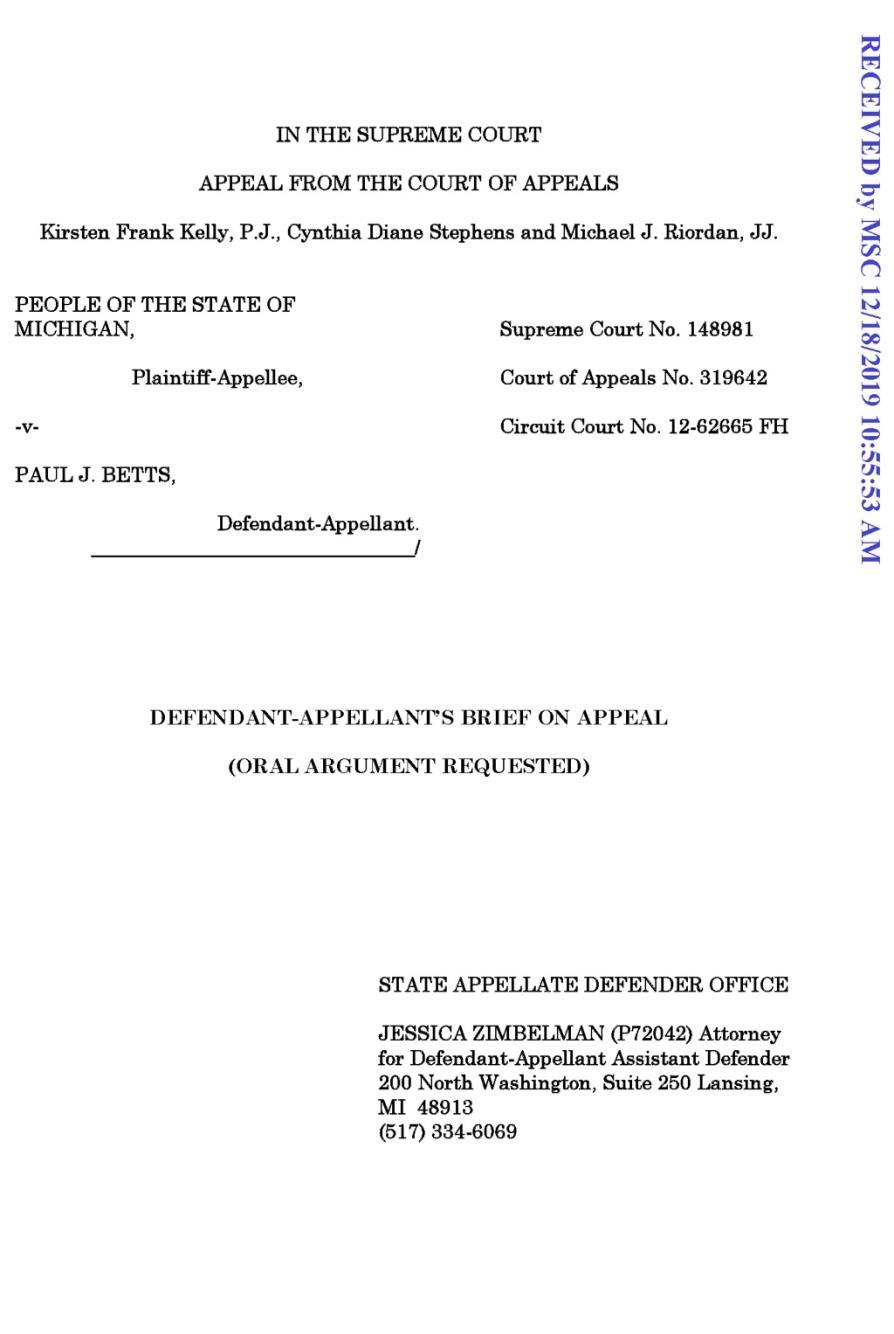 People of the State of Michigan v. Paul J. Betts Jessica Zimbelman