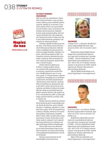 20 minut dziennie. Codziennie! Nikt nie rodzi się czytelnikiem! Czytelnika trzeba wychować, ucząc go obcowania z lekturą przez codzienne głośne czytanie. Wydaje się to banalne i oczywiste, jednak wielu z nas usprawiedliwia się brakiem czasu, zmęczeniem lub brakiem zainteresowania. Niejednokrotnie wykorzystujemy filmy, Internet czy gry komputerowe, aby zorganizować naszym pociechom wolny czas. My w tym pędzie pierzemy, gotujemy i zajmujemy się swoimi sprawami. Fundacja ABCXXI od kilku lat prowadzi akcję „Cała Polonia Czyta Dzieciom”, celem której jest przekonanie rodziców i dzieci mieszkających poza granicami kraju do stałego kontaktu z książką. Program „All of Europe Reads to Kids” ma umożliwić wymianę doświadczeń przez osoby i instytucje, które prowadzą lub chcą rozpocząć kampanie czytania dzieciom w swoich krajach. Polska Sobotnia Szkoła przy St Mary’s College podjęła wyzwanie i postanowiła zaangażować się w promocję czytelnictwa wśród Polonii w Wielkiej Brytanii. Już 21 września o godz. 11.30 zapraszamy rodziców i opiekunów mieszkających w Yorkshire na darmowe warsztaty zatytułowane „Wychowanie przez czytanie”, podczas których będziemy się zastanawiać, jak uczyć dzieci czytać; jak zachęcać je do czytania; jak dobierać lektury do wieku dziecka; kiedy zacząć/kiedy skończyć głośne czytanie dziecku; jaki wpływ ma to na rozwój dziecka; jakie są zalety głośnego czytania dziecku; prawdy i mity o czytaniu itp. Kolejna impreza czytelnicza, podczas której będziemy gościć wspaniałego pisarza Pawła Beręsewicza, autora książek dla dzieci i młodzieży, odbędzie się 5 października o godz. 10.30. W programie gry i zabawy z książką, konkursy oraz warsztaty językowe. Zapraszamy wszystkie dzieci z Hull i okolic na dzień pełen niezapomnianych wrażeń. Zachęcamy uczestników małych, większych i tych największych do przebrania się w kostium swojego ulubionego bohatera książkowego. Więcej informacji oraz aktualizacje na temat planowanych imprez znajdziecie Państwo na stronie internetowej www.polskasobotniaszkolahull.co.uk lub na Facebooku. Pytania proszę kierować do mlitwin@staff.st-marys.hull.sch.uk
