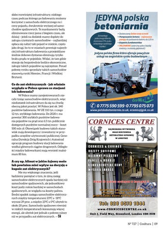 słabo rozwiniętej infrastruktury, niskiego czasu podczas którego po ładowaniu możemy korzystać z samochodu elektrycznego no i ceny pojazdu, dwukrotnie wyższej od samochodów spalinowych. Te mankamenty będą eliminowane rzecz jasna z biegiem czasu, ale dzisiaj – jeżeli na dodatek mamy dopłaty do zakupu czystszych samochodów – najbardziej opłaca się nabyć taki pojazd w mieście, często jako drugi, bo to w miastach powstaje najszybciej infrastruktura ładowania a przejeżdżane średnie dobowe dystanse eliminują ryzyko braku prądu w pojeździe. Widać, że tam gdzie stosuje się bezpośrednie bodźce ekonomiczne, zakupy takich pojazdów są najczęstsze. Ponad połowę rynku sprzedaży takich samochodów stanowią rynki Niemiec, Francji i Wielkiej Brytanii. Co do aut elektrycznych – jak właśnie wygląda w Polsce sprawa ze stacjami ich ładowania? W Polsce mamy zarejestrowanych niecały tysiąc samochodów elektrycznych, więc niedostatek infrastruktury da się na chwilę obecną jakoś przeżyć. W Polsce jest ok. 340 punktów ładowania. W UE 110 tys. z czego 12 tys. szybkiego ładowania. Do 2020 r. ma powstać 300 szybkich punktów ładowania pojazdów na prąd oraz 6,5 tys. publicznie dostępnych punktów normalnej mocy – koszt 500 mln zł. Obowiązek budowy takich stanowisk mają deweloperzy i inwestorzy w przypadku urzędów użyteczności publicznej. Generalna Dyrekcja Dróg Krajowych i Autostrad opracuje program budowy stacji ładowania wzdłuż głównych ciągów drogowych. Odległości między ładowarkami mają wynieść maksimum 80 km. A czy np. klimat w jakim żyjemy może lub powinien mieć wpływ na decyzję o kupnie aut elektrycznych? Nie ma większego znaczenia, jeśli będziemy pamiętać o tym, że zimą zasięg samochodów elektrycznych spada bardziej niż samochodów spalinowych, ale jednostkowy koszt jazdy rośnie bardziej w samochodach spalinowych, ze względu na koszty paliwa. Średni spadek zasięgu samochodów elektrycznych między temperaturami 23°C a -18°C wynosi 29 proc. a między 23°C a 0°C ubytek to około 20 proc. Samochody spalinowe również w niskich temperaturach konsumują więcej energii, ale ubytek jest jednak o połowę niższy niż w przypadku aut elektrycznych. —