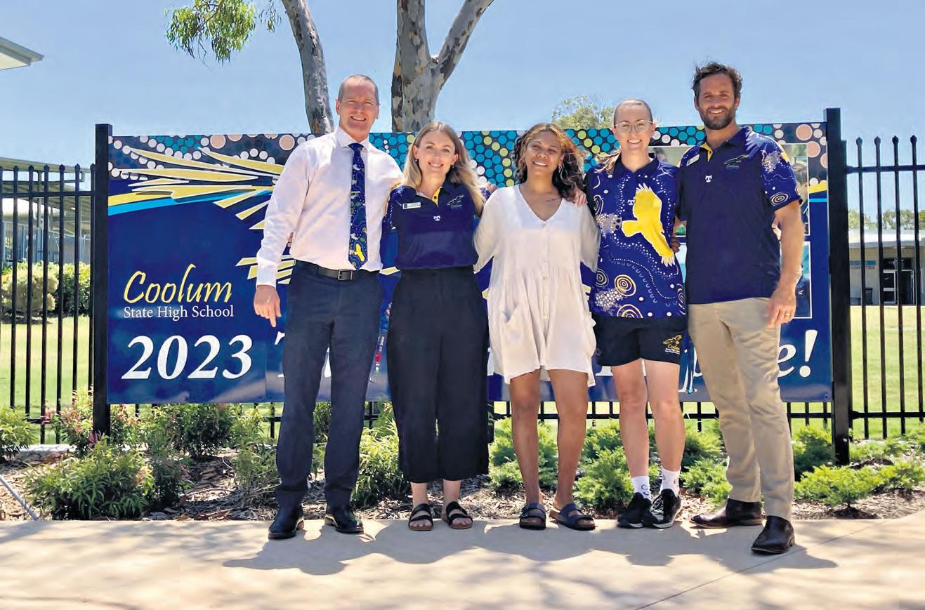 The teachers and staff at Coolum State High School now have a new uniform design that is all about further strengthening and showcasing the local indigenous community which the school is immensely proud of. The new shirts and es feature a design by First Na ons ar st Nikita Fitzpatrick who has previously collaborated with the school via her large-scale murals at the school. The design shows the school’s mascot the Brahminy Kite bird interspersed with symbolic images that represent coming together, waterways and mee ng circles. The project was spearheaded by the Coolum State High School P&C and in the two weeks that the new uniforms have been available the staff have been overwhelmingly suppor ve of the new a re which is not mandatory for them to wear but many are choosing to wear simply because of what the design represents, the quality of the apparel and because they are proud of their school. Pictured are Coolum State High School Principal Troy Asco , admin assistant Bec Stewart, ar st Nikita Fitzpatrick, HPE teacher Tamika Megawa and languages teacher Ryan Stewart. Story con nued page 3.