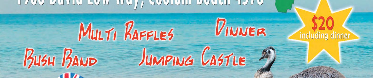 Quota Club of Coolum Beach have a business meeting at 2 pm at the Lion’s Den, 15 Russell St, Coolum Beach on the second Tuesday of the month. The club has been active in the local community for 26 years raising money to support women, children, and the disadvantaged. If you would like to join a group of motivated and dedicated women, we would love to hear from you. For information contact Sandra Verrall on 0457 355 734 or secretary@quotacoolum. com.au.