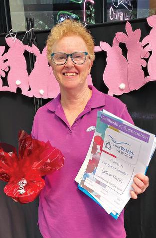 Gillian, from BreastScreen Queensland joined us as our April guest speaker and provided us with valuable information on screening and self-examination. We welcome new members to our club, and we meet for lunch on the second Thursday of each month at The Loose Goose Restaurant located along Ocean Drive at Twin Waters from 11am for 11.30am start. Please contact Doreen on 0415 695 921 or email twinwatersviewclub@ gmail.com and we hope to see you at our next meeting and lunch.
