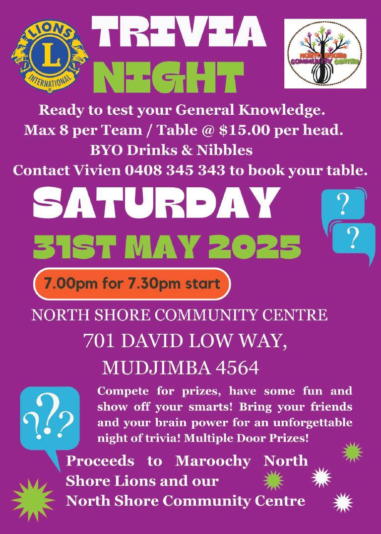 Inviting all ladies to our group where we bring together women from all walks of life to enjoy each other’s company and form friendships. Meeting from 9.30am to 11.30am each Friday (during school term) at Yaroomba Meeting Place, 1443 David Low Way, Yaroomba. Entry fee includes morning tea, guest speakers or activities. Esme 0408 077 882.
