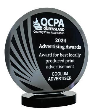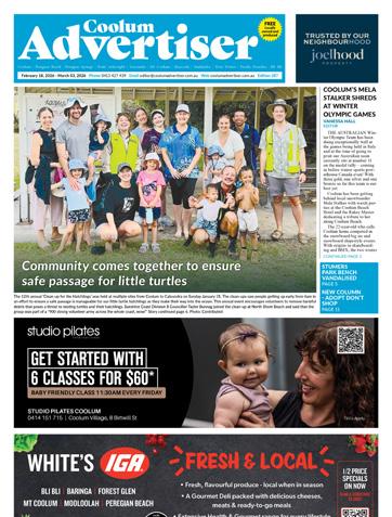 The Coolum Advertiser is locally owned and published by Michelle Box (the “Publisher”) ABN 641 822 011 24. The contents of the Coolum Advertiser are subject to copyright, and reproduction in whole or in part without the written permission of the Publisher is prohibited. The publication of editorial in the Coolum Advertiser does not necessarily constitute endorsement of the views or opinions expressed by the Publisher. The Publisher does not accept responsibility for statements made by advertisers. All prices in the Coolum Advertiser are correct as at the time of printing but are subject to change. The Publisher reserves the right to, and may