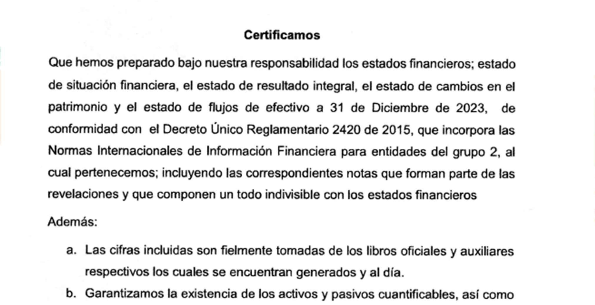 De acuerdo con la legislación colombiana y la política interna de Presentación de Estados Financieros,únicamentetienelaobligacióndeprepararEstadosFinancierosindividualesde propósito general ya que no posee inversiones patrimoniales en entidades donde tenga control o influencia significativa.