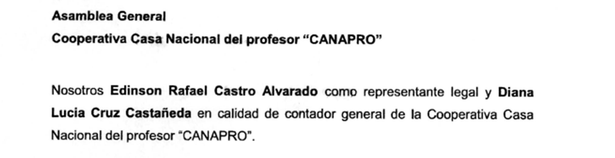 La CasaNacionaldelprofesor“CANAPRO”, Cooperativa Multiactiva, esunaentidad asociativadecarácterprivadosinánimodelucro,conplazodeduraciónindefinido, regidaporlasdisposicioneslegalesvigentes;obtuvolapersoneríajurídica1710el17 denoviembrede1958otorgadaporDancoop,actualmenteseencuentravigiladaporla SúperIntendenciadeEconomíaSolidaria“SUPERSOLIDARIA”.