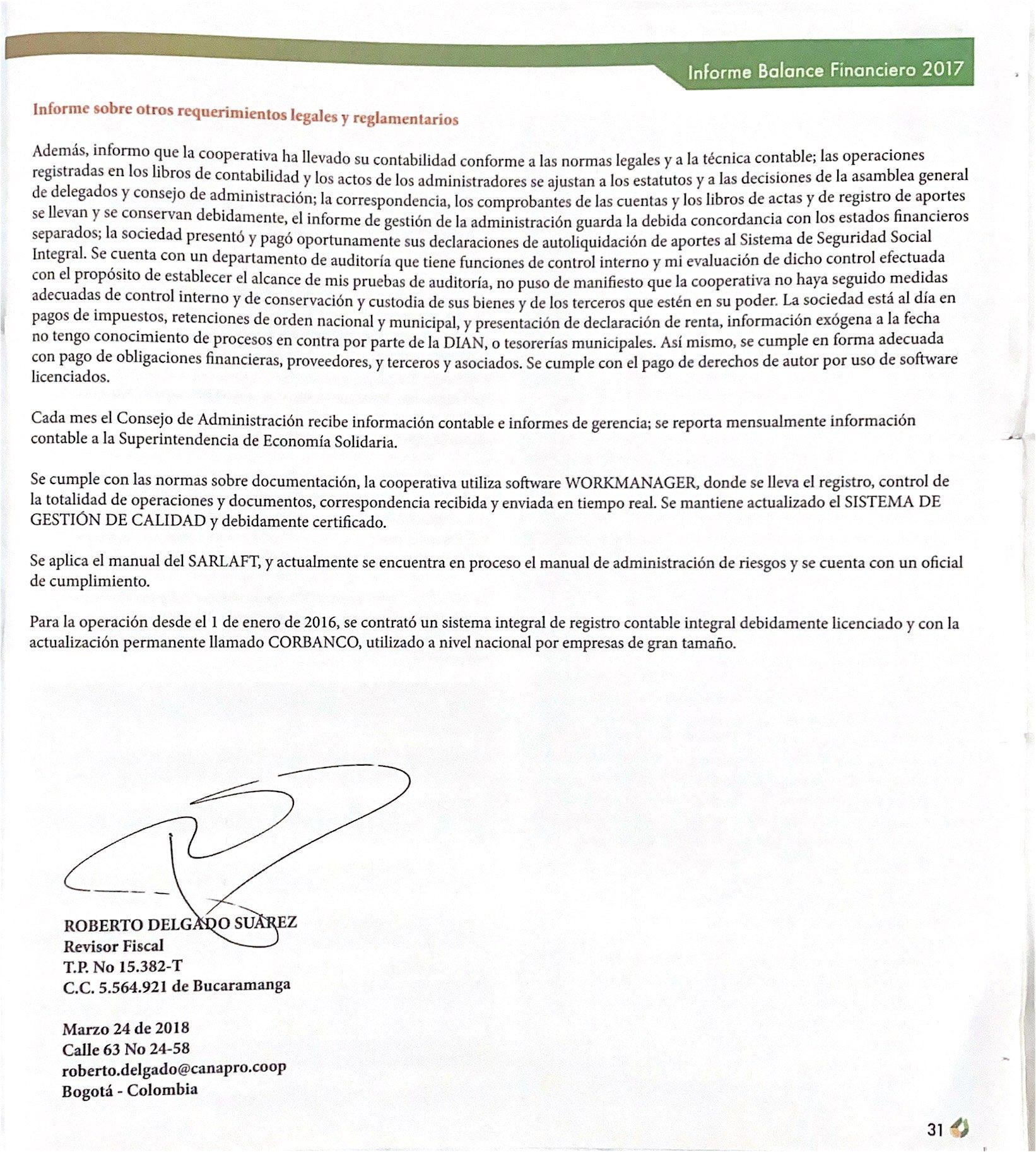 Informe de Gestión Anual CANAPRO 2017