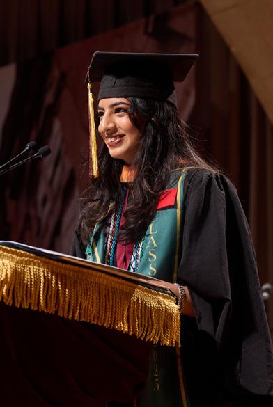 Zareena Al-Shehab ChE’25 was selected to deliver the class’s student commencement address. Remarking on the “unprecedented times” in which her generation grew up, Al-Shehab said, “‘Unprecedented’ isn’t just a word that describes the world we inherited. It is a word that describes us. The Class of 2025 is unprecedented as hell.” She expressed gratitude to her parents and the Cooper community, offering encouragement to her classmates in the face of pressing global challenges: “What we build, whether with our hands, our minds, or our hearts, has the power to strengthen communities and leave a lasting legacy. It is not just about what we create, but about the impact we leave behind. It is now our turn to be the giants whose shoulders’ future generations will stand on.”