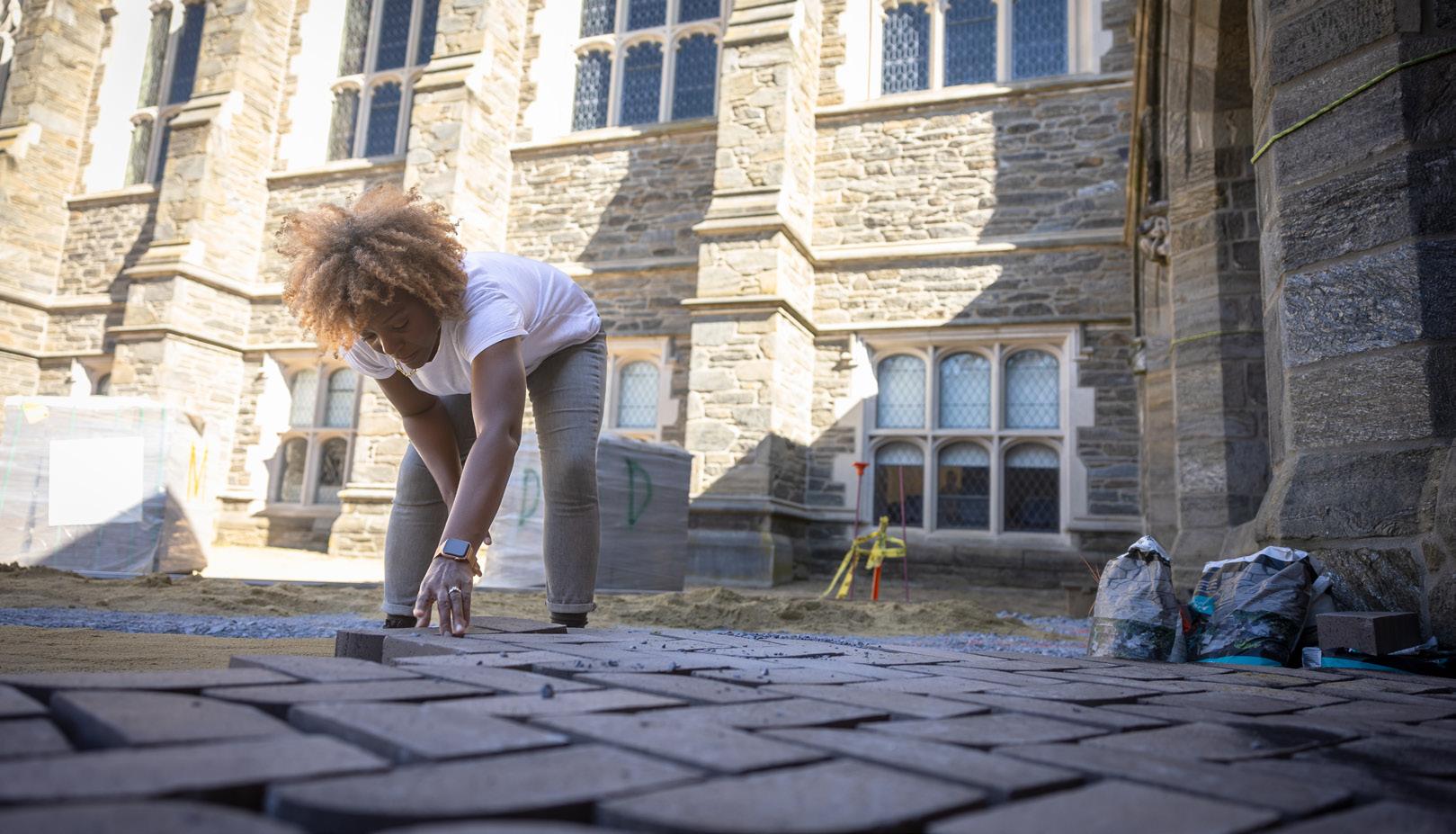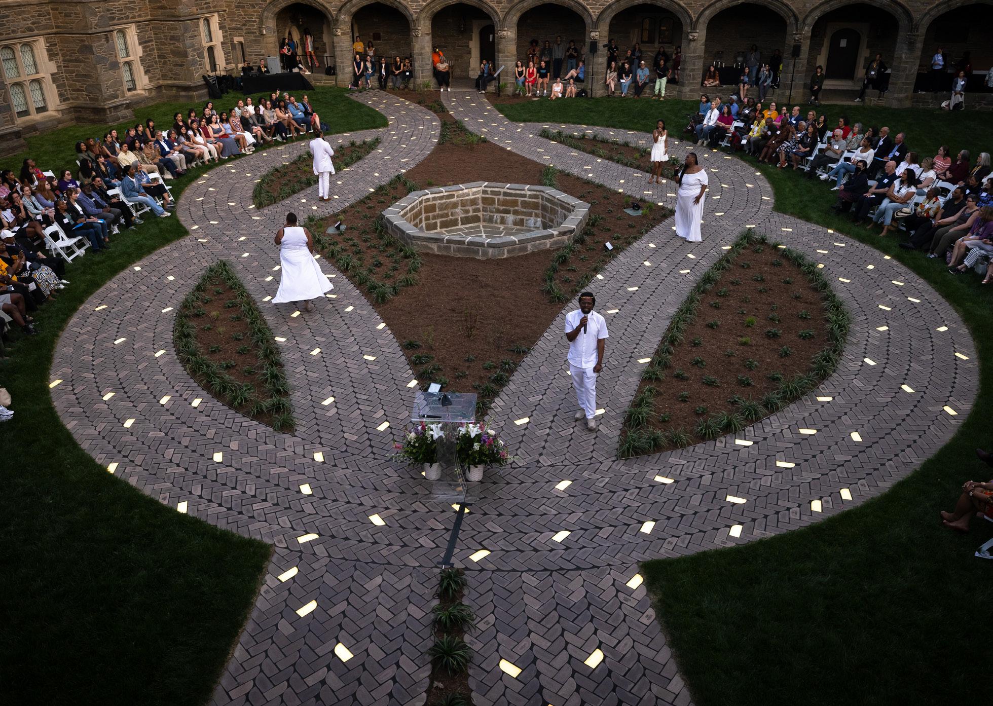 Durrett, who earned an M.F.A. from the University of Michigan after graduating from Cooper, describes the square-knot path as showing that Bryn Mawr’s untold stories are firmly “braided into the landscape.” Not coincidentally, the memorial’s location in the Cloisters is the site of an important annual ritual for undergraduates called Lantern Night, in which current students pass “the light of knowledge” to the incoming class and each new student is given a lantern to mark this rite of passage. When next year’s students hoist their lanterns and sing in Ancient Greek, the path, light, and above all, the names will remind them of the buried histories now being woven into the college’s collective memory.