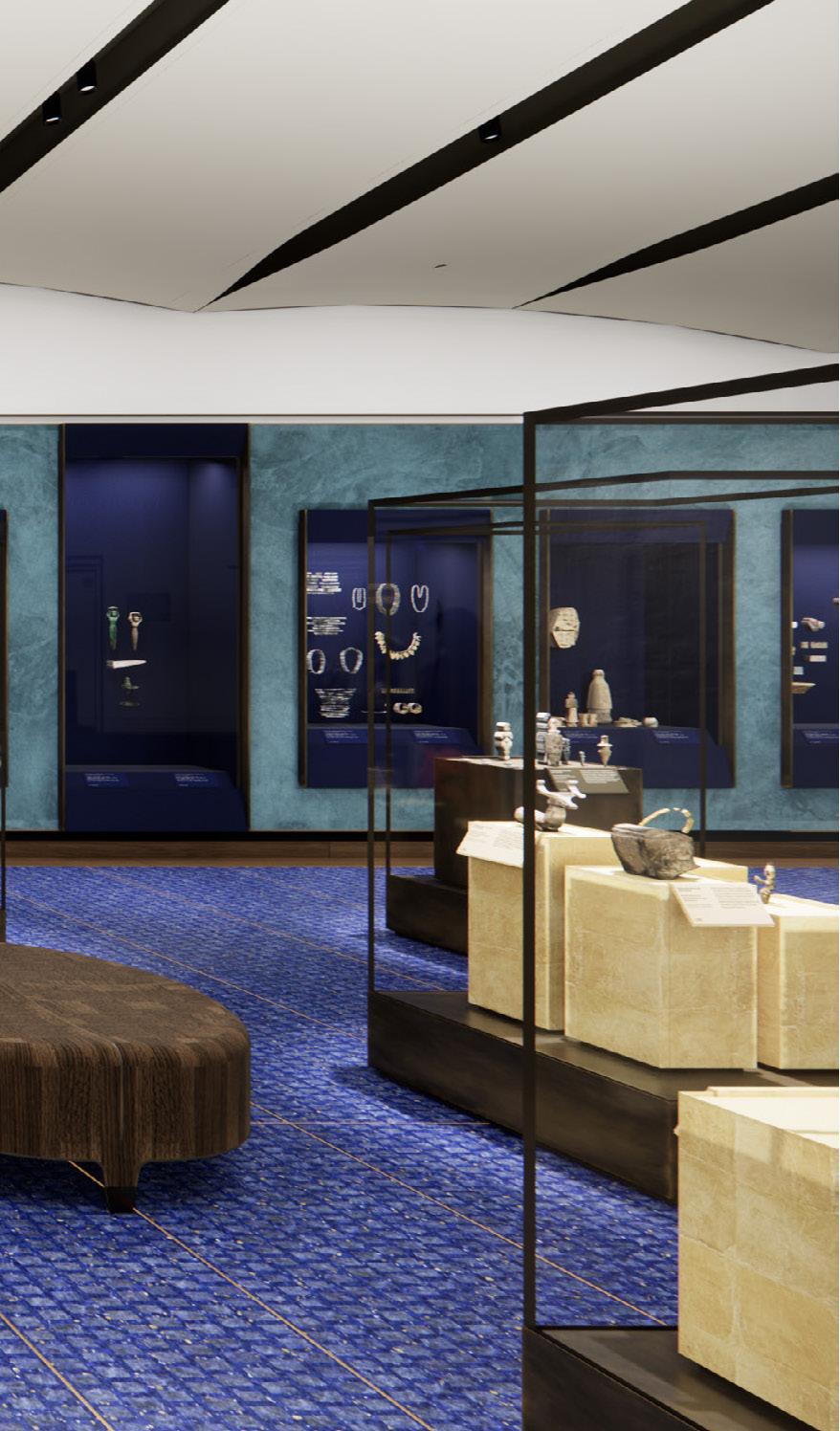 Below: The Hasanlu exhibit with a view of the torus wall, what NADAAA calls “a chromatic belt” that connects the open-plan galleries.