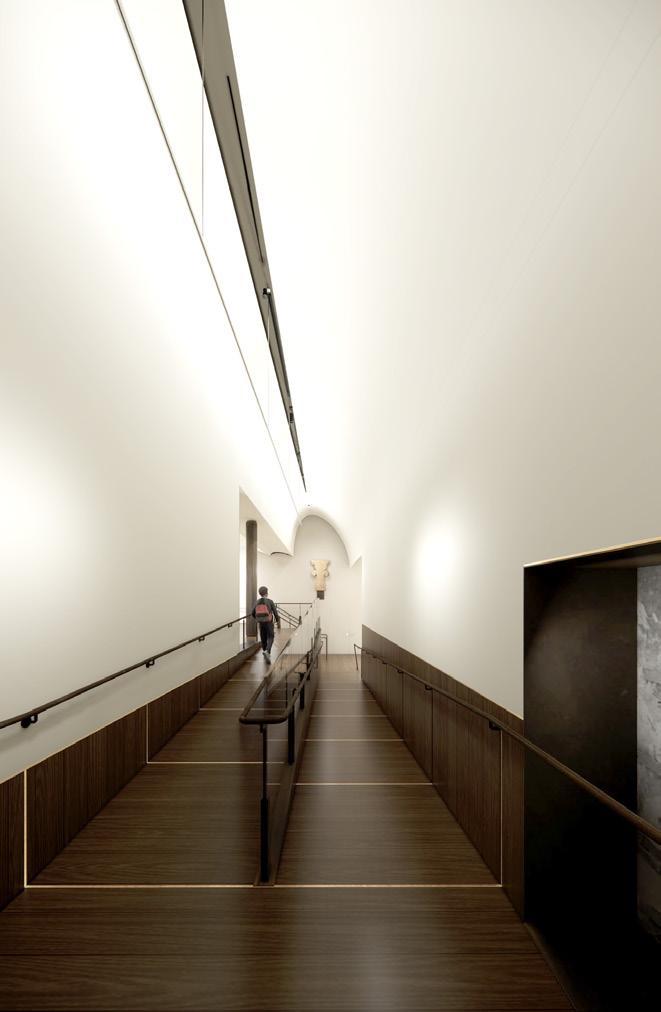 Above: The galleries’ vaulting system incorporates reveals, within which critical functional elements of the spaces (lighting, HVAC, security, and fire systems) are masked; the cadence of the vaults aligns with epochs and narratives along a curated timeline.