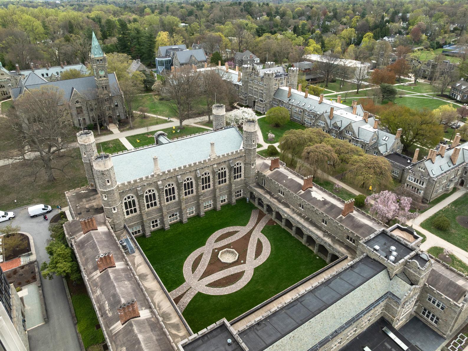 Durrett’s memorial at Bryn Mawr consists of interwoven clay paver paths installed in the Cloisters—the courtyard of the college’s Old Library—and shaped as a square knot, symbolizing connection and permanence. Underneath, a network of tunnels had once served as underground passageways used by