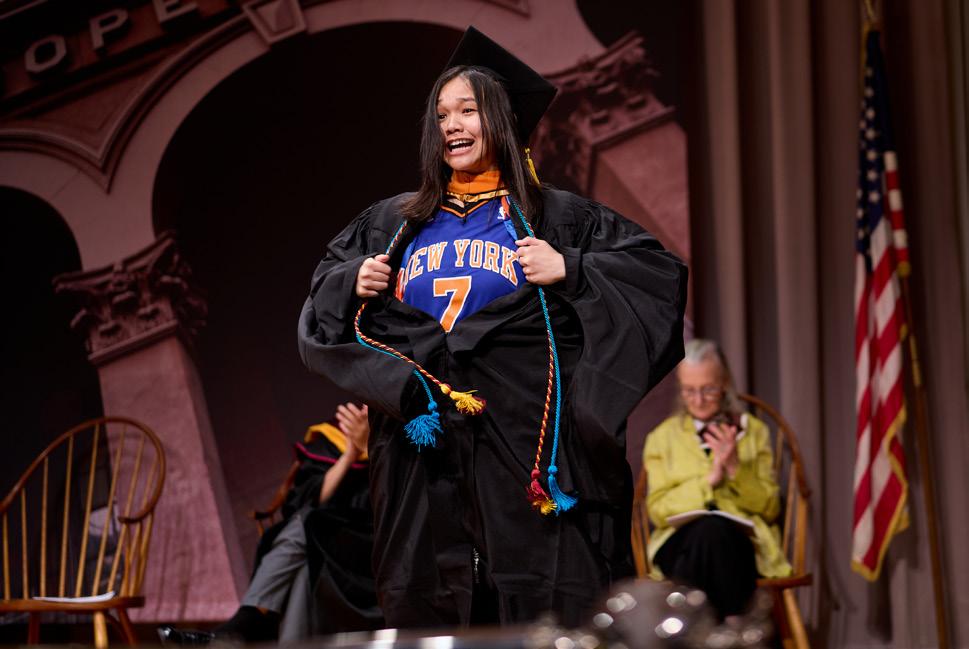 Right: Crystal Woo CE’25 celebrated getting her master’s degree and the Knicks advancing in the playoffs.