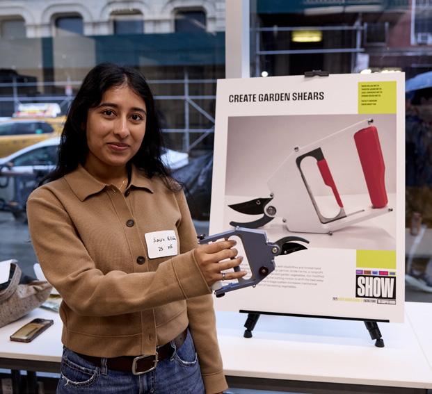 Left: Saira Billah ME’25 shares her joint senior project that redesigns the typical garden shear to help those with limited hand mobility. Billah with fellow ME’25 graduates Taaseen Jahan, Jade Lombardo, and Sonam Okuda altered the cutting motion to shift the load away from sensitive hand muscles.