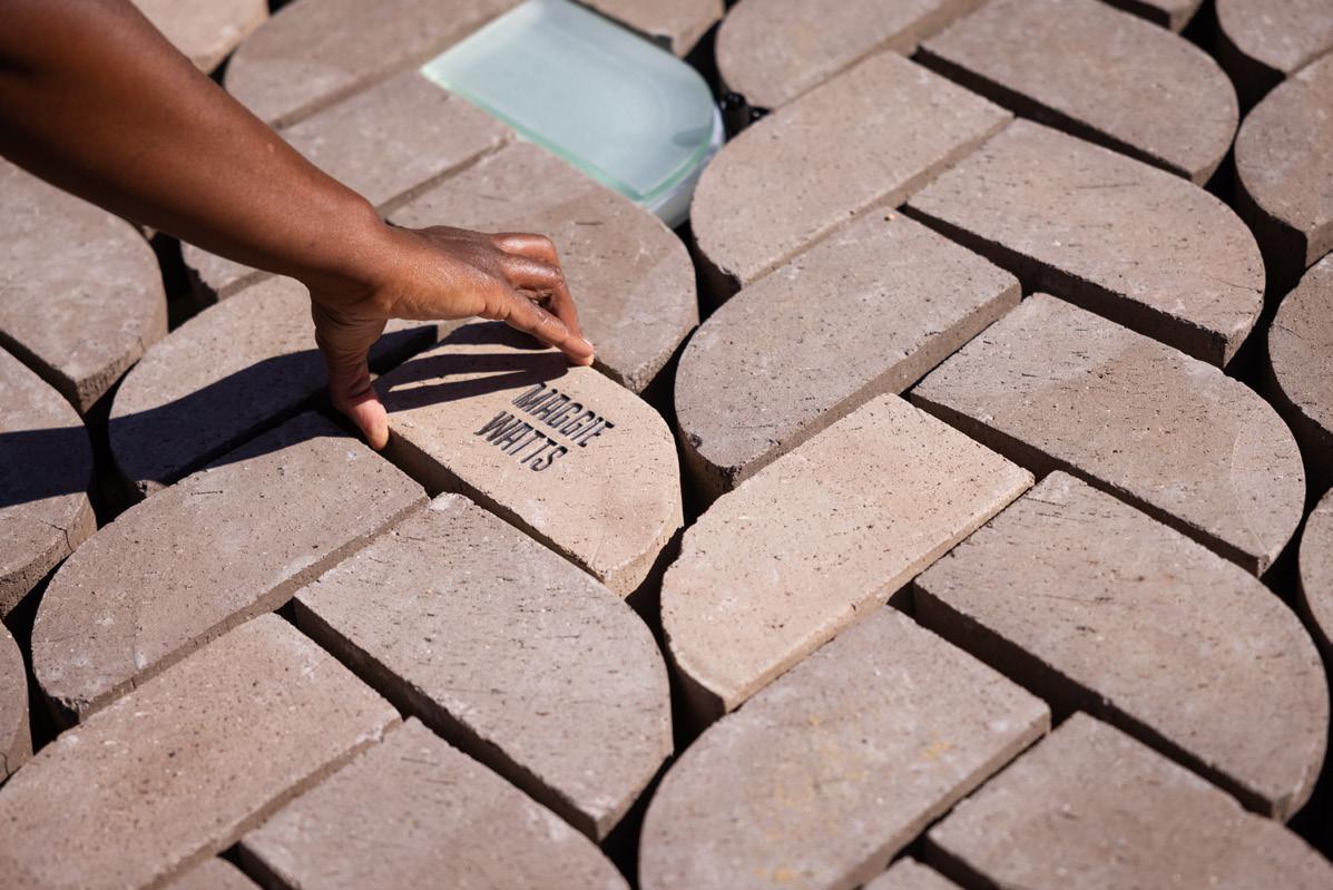 Connecting those years to more recent events, Durrett incorporated soil from the site of a Black cultural center established by the college after 1972 student protests and then abruptly razed in 2013 because of the building’s structural problems stemming from years of neglect. The artist used the soil to glaze the clay pavers.
