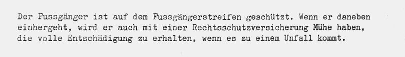 «Wie Sie ja wissen, sind heute alle Mitglieder (vielleicht nicht ganz alle, aber doch der ganz grosse Teil unserer Verbandsmitglieder) motorisiert. Die Rechtsschutzleistung unseres Verbandes ist sehr gut und wird von den Mitgliedern deshalb natürlich auch geschätzt. Eines aber wurde immer und immer wieder vermisst: eben die Ausdehnung der Leistung auf Verkehrsunfälle mit dem Privatfahrzeug.»