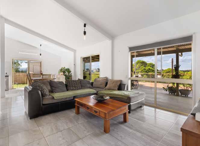 option of separate living. Water is not an issue with town water on tap, a 22,000-litre tank, and a dam with irrigation and fire safety sprinkler system in place. Fruit trees aplenty including citrus, mango, star fruit, guava, and lemon/lime add to the property’s charm. Full dog mesh fencing is in place for the safety of children or pets.
