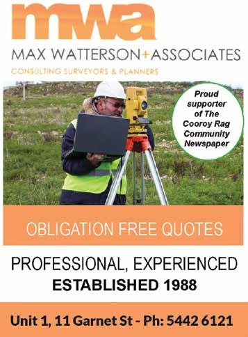 Wimmers Lane, Cooroy P.5391 3440 www.theshedcompany.com.au Every 3 weeks, 7500 copies of the Cooroy Rag are distrubuted throughout our community to Tewantin, Doonan, Eumundi, Noosaville, Boreen Point, Imbil, Gympie, Cooroy and Pomona Website: www.cooroyrag.com.au | PO Box Address: Cooroy Rag, PO Box 898, Cooroy, 4563 | Committee Email: secretary@cooroyrag.com.au