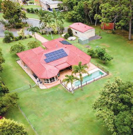 The 3x8 swimming pool is surrounded by pink tumbled marble tiles, and there is a 6.4 kW solar system. Set on a level, easy-tomaintain block within walking distance to town, the property is fully fenced with electric gates and has views to Mt Cooroora from the rear of the block.