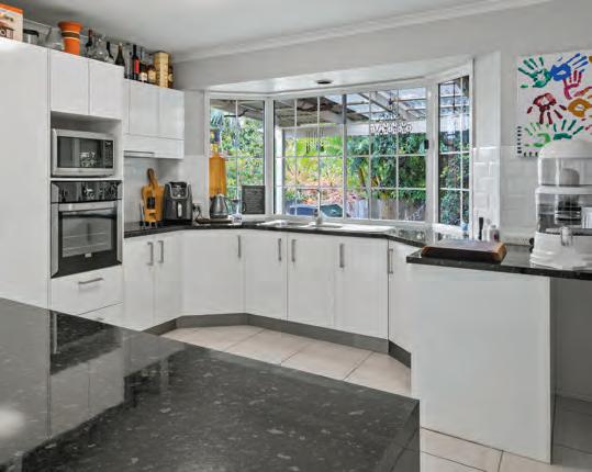 dishwasher, and a wall of floor-toceiling cupboards providing ample storage. Open-plan generous living/dining areas and a separate formal lounge or media room provide for all family activities. All bedrooms are carpeted and well sized, with three having built-ins. The fourth bedroom could also be a generous sized office. The master bedroom has a walk-in robe and ensuite bathroom, and its own entry via plantation shutter doors.