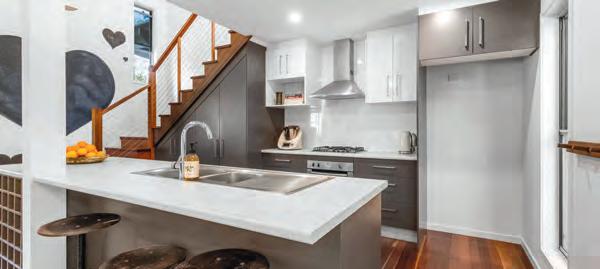 a stylishly updated bathroom and kitchen, offering the best of both worlds. Underneath the home is a dream workshop space complete with a lounge area and built-in wine fridges – the ultimate creative retreat or chillout zone.