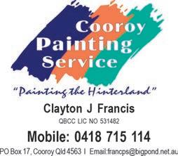 ABN 13 863 064 712 | PUBLISHED EVERY 3 WEEKS by Cooroy Community Newspaper Incorporated trading as Cooroy Rag. Opinions expressed by contributors to Cooroy Rag are not necessarily those of the editor or the publisher and publication of advertisements implies no endorsement by the publisher