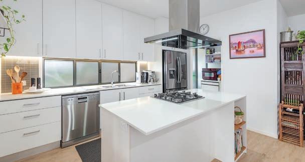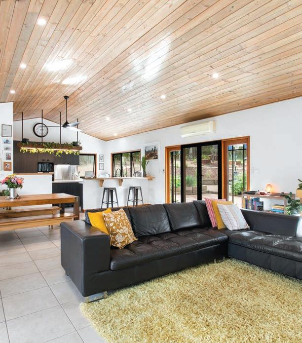 a wider opening, could also be used as a home office or an extra utility room. The main bathroom has floor-toceiling tiles and timber-look cabinetry. To help keep daily costs down, there’s a 6.6 kW solar system, and as well as town water supply, there is also plumbed filtered rainwater.