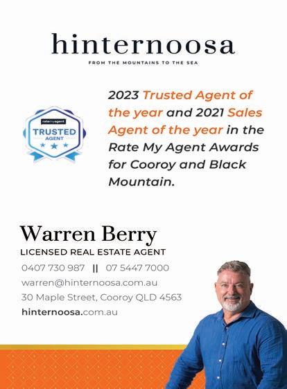 $1,765,000. Congratulations also goes to Warren Berry for recently being recognised in the top 20 per cent of agents nationwide by Rate My Agent for his high level of customer satisfaction. This service was at the forefront of an impressive five properties Warren put under contract in Cooroy this month.