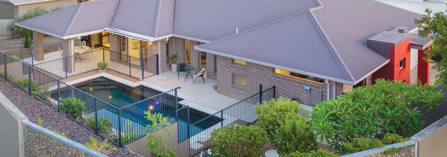 den shed provides additional storage for tools and equipment, while a home alarm system ensures peace of mind for the occupants. Whilst the home is air-conditioned, the 6.6 kW solar panels not only contribute to energy efficiency but also reduce utility costs, reflecting a commitment to sustainability.