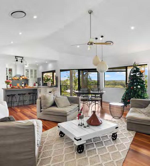 abundant storage and a fully tiled double garage further enhance the home’s appeal. A two-way fireplace brings warmth to both the lounge and outdoor entertaining area. Set on six fenced acres, the property is ideal for hobby farming, horses or simply enjoying wide-open space. A large dam supports irrigation or livestock, and an inground salt-chlorinated pool, set up for solar heating, offers year-round enjoyment. A substantial powered shed with workshop space caters perfectly to tradies or collectors. Walking trails, rainforest surrounds, a babbling stream and abundant birdlife create a serene natural sanctuary. Concrete driveways, manicured gardens, a bio-septic system and four water tanks ensure lowmaintenance, self-sufficient living. Beautifully maintained and ready for its next chapter, this rare acreage opportunity offers privacy, tranquillity and unbeatable convenience. Contact Kath today to arrange your private inspection. 4 3 10 4 3 2