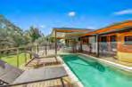 Outside, the sparkling swimming pool pairs with a beautifully appointed entertaining area framed by manicured landscape gardens – a tranquil haven for relaxing, hosting, or enjoying the gentle rhythm of hinterland living with nature at your fingertips. The property also features extensive vehicle accommodation, including under-house parking for up to seven vehicles, along with additional undercover parking beside the shed. Whether you need space for cars, caravans, boats, trailers or work equipment, this layout offers outstanding flexibility for families, trades, hobbyists or those with multiple recreational vehicles.