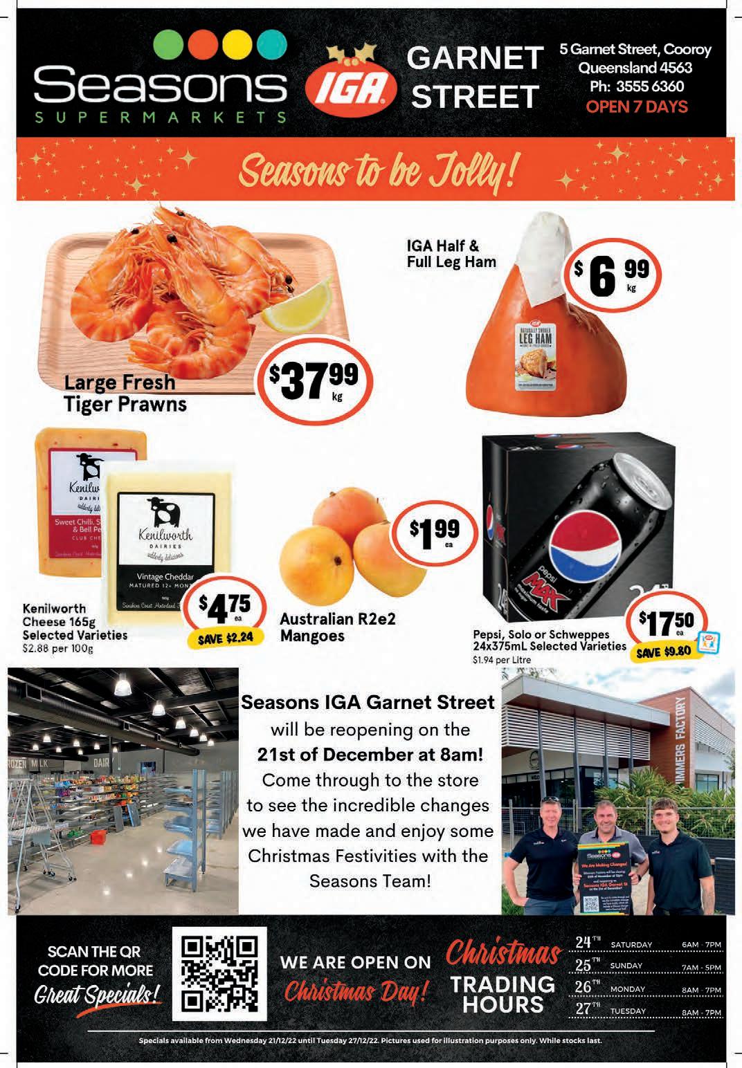 48 - Cooroy Rag, 21 December 2022 Page Specials Available From Wednesday 23rd March To Tuesday 29th March 2022 Unless Sold Out. No Rainchecks Will Be Given. Pictures Used For Illustration Purposes Only. Limit Rights Reserved. Normal Retail Limits Apply. We Reserve The Right To Correct Printing Errors. POMONA 3-5 Reserve St, Pomona 4568 Ph: 5485 1297 Christmas Trading Hours 19 Nov-20 Dec 7:00am-8:00pm 21 Dec-23 Dec 7:00am-9:00pm Christmas Eve 7:00am-6:00pm All other days 7:00am-8:00pm Specials Available From Wednesday 21st December to Tuesday 27th December. Unless Sold Out. No Rainchecks Will Be Given. Pictures Used For Illustration Purposes Only. Limit Rights Reserved. Normal Retail Limits Apply. We Reserve The Right To Correct Printing Errors. The Country Chef Pavlova 500gm Tasmanian Heritage Cheese Blue/Brie, Selected Varieties Summer Snow Sparkling Drink Selected Varieties Jarlsberg Cheese 250GM $599 ea Balfours Plum Pudding 700gm, Selected Varieties $599 ea $1399 kg $449 ea Sandhurst Kalamata Olives 500gm $499 ea $354 ea 540 ea Kelly Candy Range 160-225 gm, Selected Varieties So Soft Marshmallow 300gm, Selected Varieties $349 kg Wattle Valley Chunky Dips 200gm, Selected Varieties Ashgrove Cheeese Selection Beer/Wine Lovers 250gm, Selected Varieties $1999 kg Australian Beef Rib Fillet $349 ea $499 ea $1199 kg ON SALE 21ST DEC 2022 Australian Beef Mince Minimum 1.2kg Buy