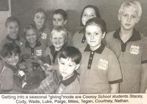 Every 3 weeks, 7500 copies of the Cooroy Rag are distrubuted throughout our community to Tewantin, Doonan, Eumundi, Noosaville, Boreen Point, Imbil, Gympie, Cooroy and Pomona Website: www.cooroyrag.com.au | PO Box Address: Cooroy Rag, PO Box 898, Cooroy, 4563 | Committee Email: secretary@cooroyrag.com.au THE smiling faces of this group of Cooroy State School students appeared in the Cooroy Rag in 2002. The