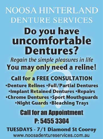 Follow us on Facebook @cooroyragcommunitynewspaper for the latest community news, stories and events The Cooroy Rag Community Newspaper is a not-for-profit newspaper owned by the community, in print since 1961 WE GIVE B A C K • TON - F -RO RP O F IT GET STARTED WITH 6 CLASSES FOR $60* 3/24 Lanyana Way Noosa Heads QLD 4566 noosa@studiopilates.com 0413 927 880 T&C’s Apply. New Clients Only. ADVERTISING & ADMINISTRATION Jodi Brennan advertising@cooroyrag.com.au EDITORIAL Alex Purcell editorial@cooroyrag.com.au ADVERTISING Judy Painter sales@cooroyrag.com.au PRODUCTION Kristina Tindall production@cooroyrag.com.au OFFICE Phone: 5442 6699