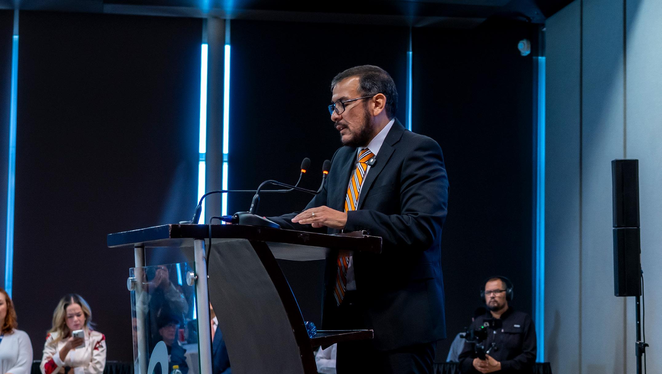 “Los felicito por todo el esfuerzo de hoy de traer este foro tan importante que reúne a líderes y especialistas en la materia del derecho laboral, del trabajo… para mí es grato en representación del Gobernador, Samuel García, poder acompañarlos”, expresó.