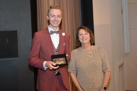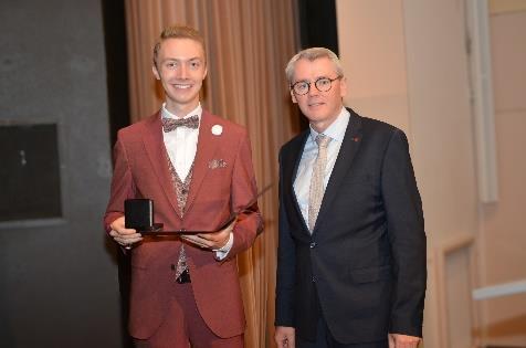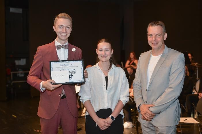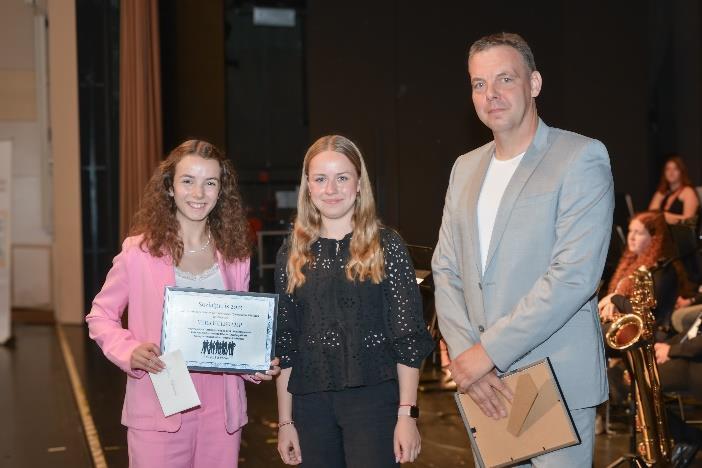 Anschließend zeichnete Herr Meyer für den Schulträger Theodor Flatken mit der Medaille des Landkreises Cloppenburg für den besten Notendurchschnitt und besondere Leistungen aus. Auch den durch Frau Kordes verliehenen Copernicus-Preis 2025, gestiftet von der LzO, erhielt Theodor Flatken als bester Absolvent.