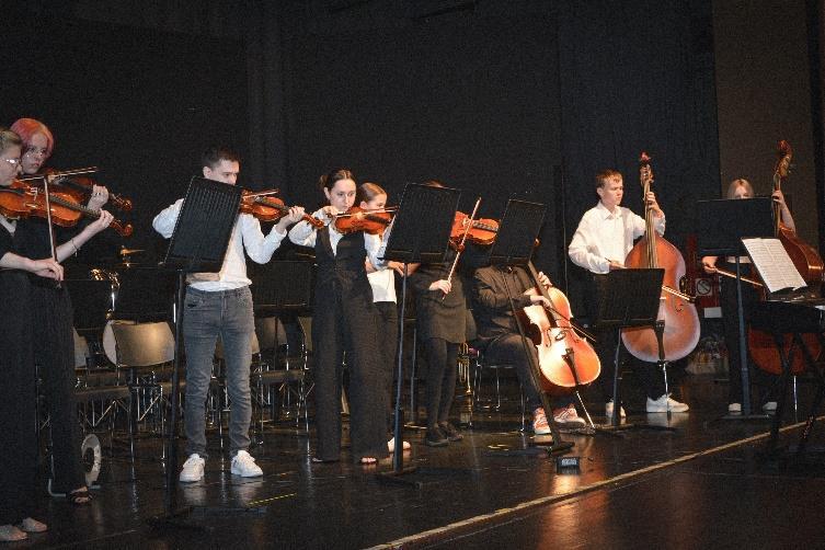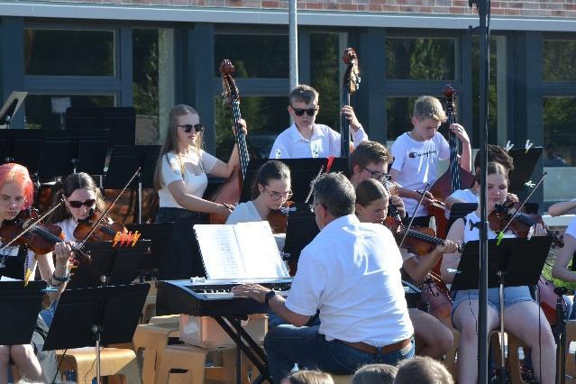Das Schulorchester, ebenfalls unter der Leitung von Philipp Hemmen, begeisterte im Anschluss mit zwei Höhepunkten: der farbenfrohen Filmmusik aus Encanto und einer beeindr uckenden Fassung von Bohemian Rhapsody .