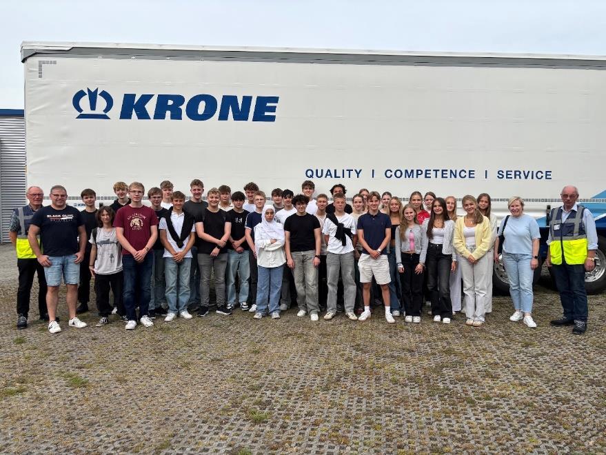 Am Dienstag besuchten wir den Campus Lingen der Hochschule Osnabrück. Dort wurde uns das Studienfach Wirtschaftsinformatik vorgestellt. Besonders interessant fanden wir die Erklärung, wie ChatGPT funktioniert, und wir durften die Labore sowie den Campus besichtigen. Danach hatten wir eine Führung bei der Firma Krone in Werlte,