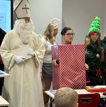 Heute besuchte der Nikolaus mit seinem großen Gefolge das CGL. In den ersten zwei Stunden stattete der Abiturjahrgang 2026 in weihnachtlichen Kostümen den verschiedenen Klassen einen Besuch ab. Es wurden kurze Spiele gespielt, Lieder gesungen und gemeinsam gelacht. Eine Belohnung gab es am Ende natürlich auch.